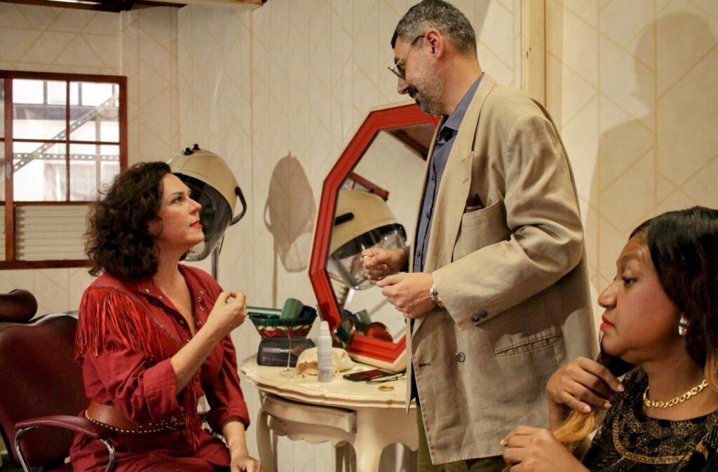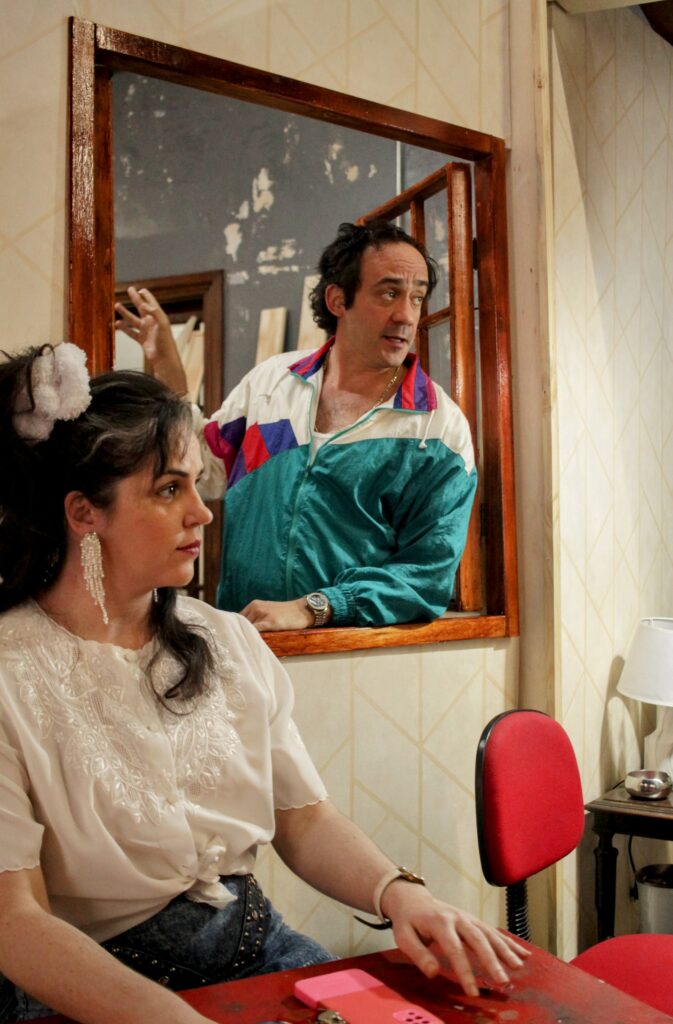 No salão de beleza típico da década de 1980, clientes e funcionários trocam informações sobre a violência enfrentada pela moça de família distinta. “Eu não escrevi a peça pensando em reproduzir um salão de beleza, mas a ambientação se impõe como um espaço social e importante para a dramaturgia”, salienta Canhameiro.