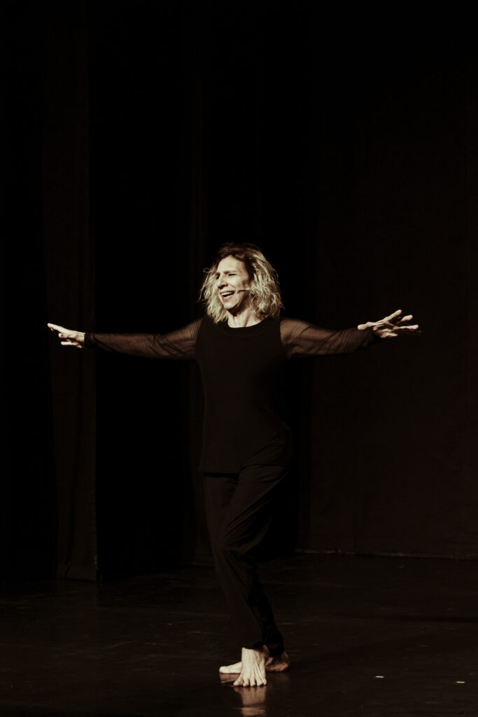 No palco, a intérprete cria imagens cênicas inesquecíveis, executadas por uma partitura que articula gesto e palavra com liberdade e criatividade desconcertantes. Uma linguagem teatral fundada sobre princípios que vão além da simples definição de solos com recursos de mímica e acúmulo de funções: na maioria deles, Denise Stoklos dirige, atua, cria a cenografia e o texto.