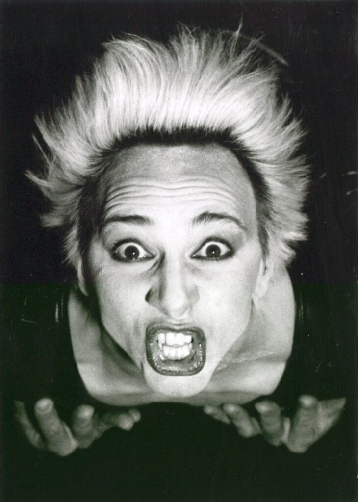 Denise Stoklos em imagem de divulgação da estreia de Mary Stuart, em 1987. Foto Isla Jay