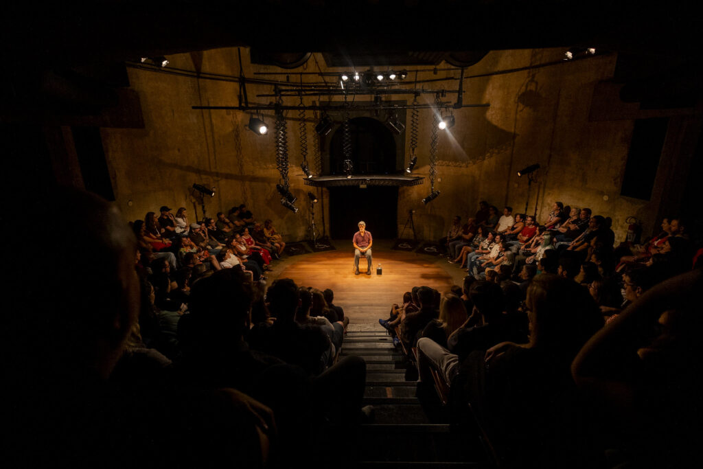 A organização do festival ofereceu espaço com muitos lugares para a apresentação, mas Moscovis e o grupo criativo preferiu o Teatro Paiol, com 217 lugares. Em compensação, o ator aceitou fazer quatro apresentações ao invés das tradicionais duas. “O espaço interfere diretamente, pois a encenação, sendo um depoimento do personagem, ganha muito com a proximidade do público. Isso faz toda a diferença”, disse Moscovis.