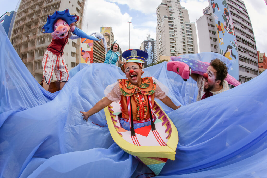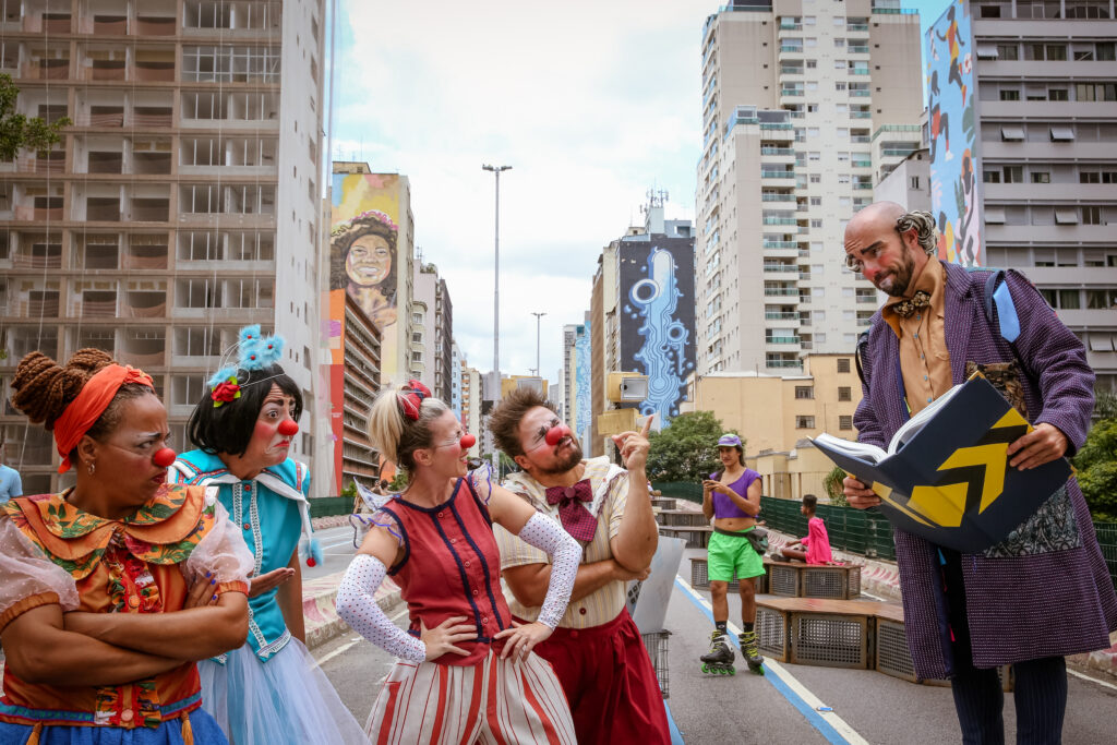 Companhia encena, com a ajuda das crianças da plateia, uma importante lição de cidadania: como o espaço urbano precisa considerar mais as infâncias e estimular as brincadeiras ao ar livre de forma segura e saudável