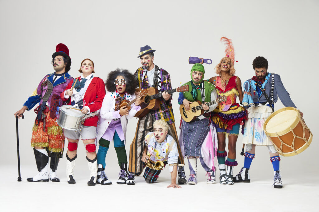 O elenco da peça infantil O Pequenino Grão de Areia. Foto Ale Catan