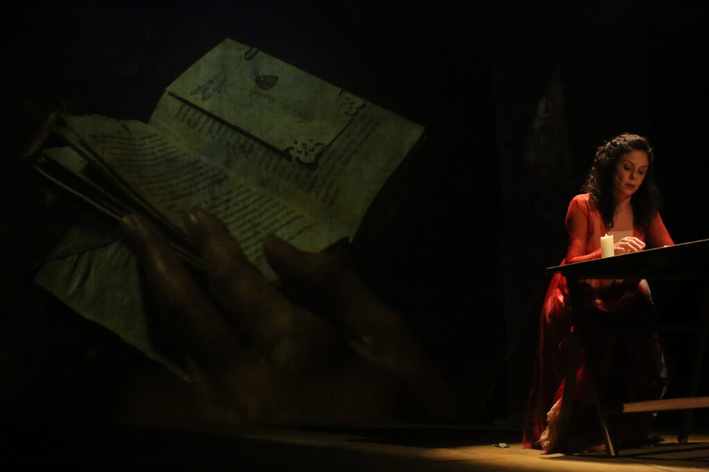 “Eu peguei o eixo central do livro, o período da gestação, e perfurei a história com experiências pessoais, coletivas e questões contemporâneas”, diz a intérprete. “Desde 2015, eu me transformei muito como mulher e artista e vi que não poderia me restringir a uma adaptação.”